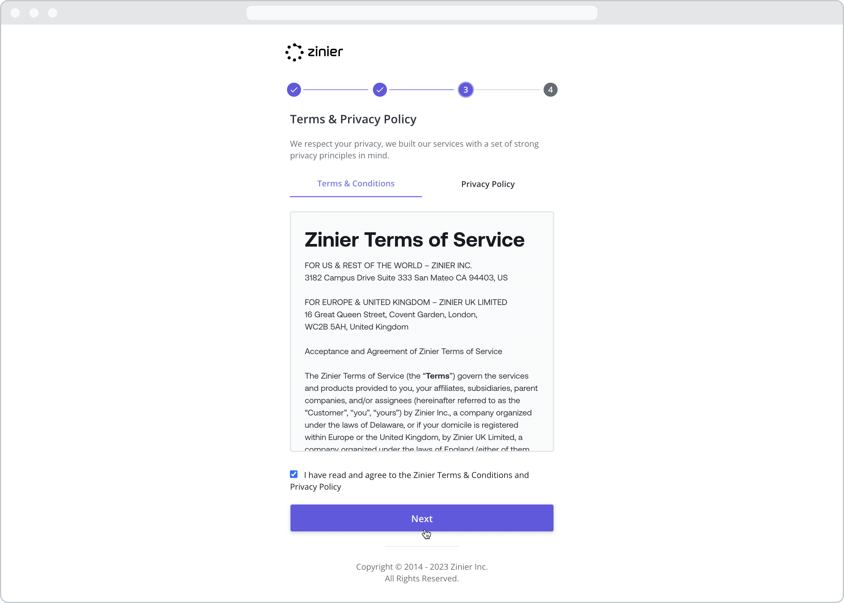 Step 3: Accept the Terms and Privacy Policy and Activate Your Account
