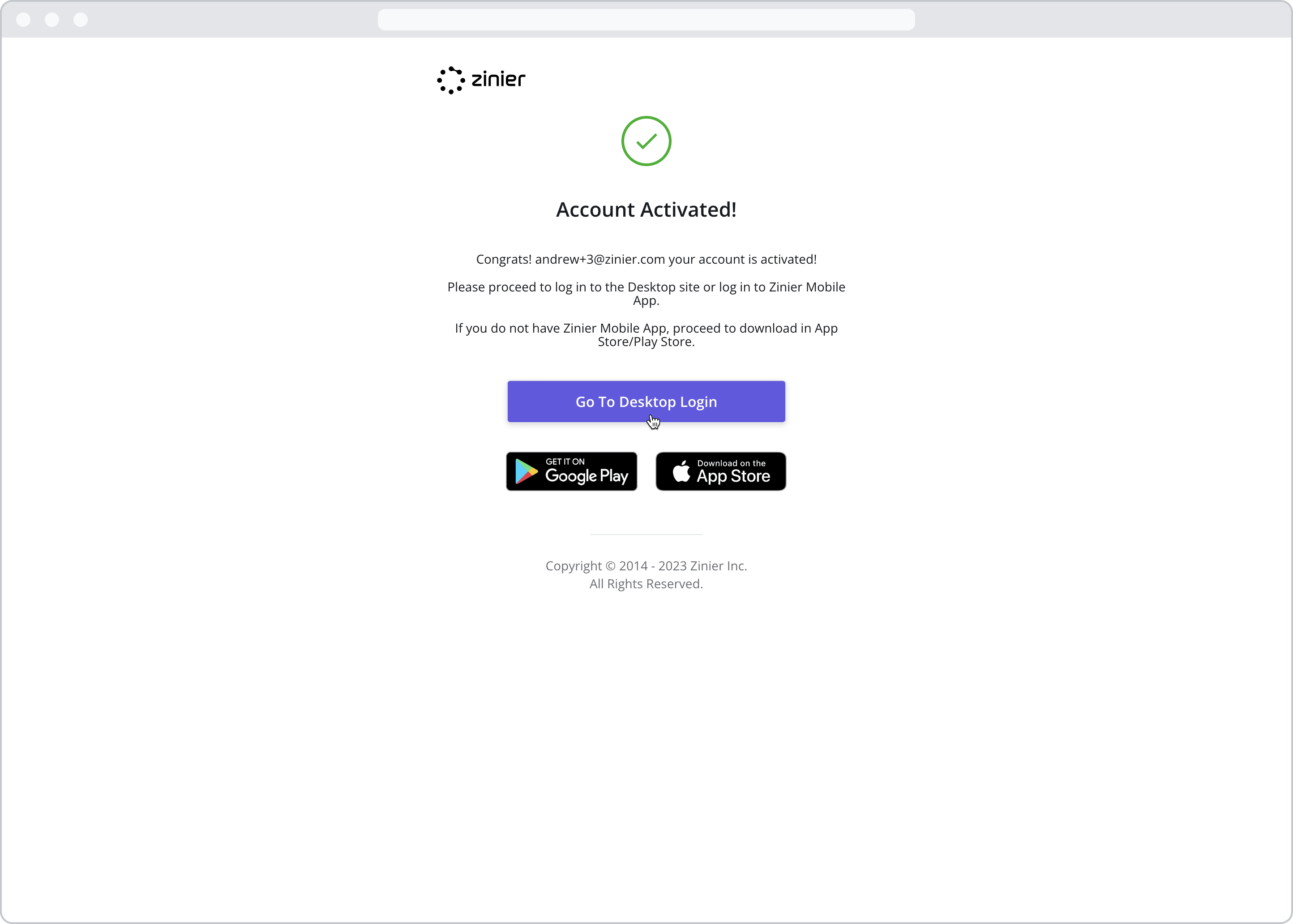 To login to your account right away, click the “Go to Desktop Login” button.